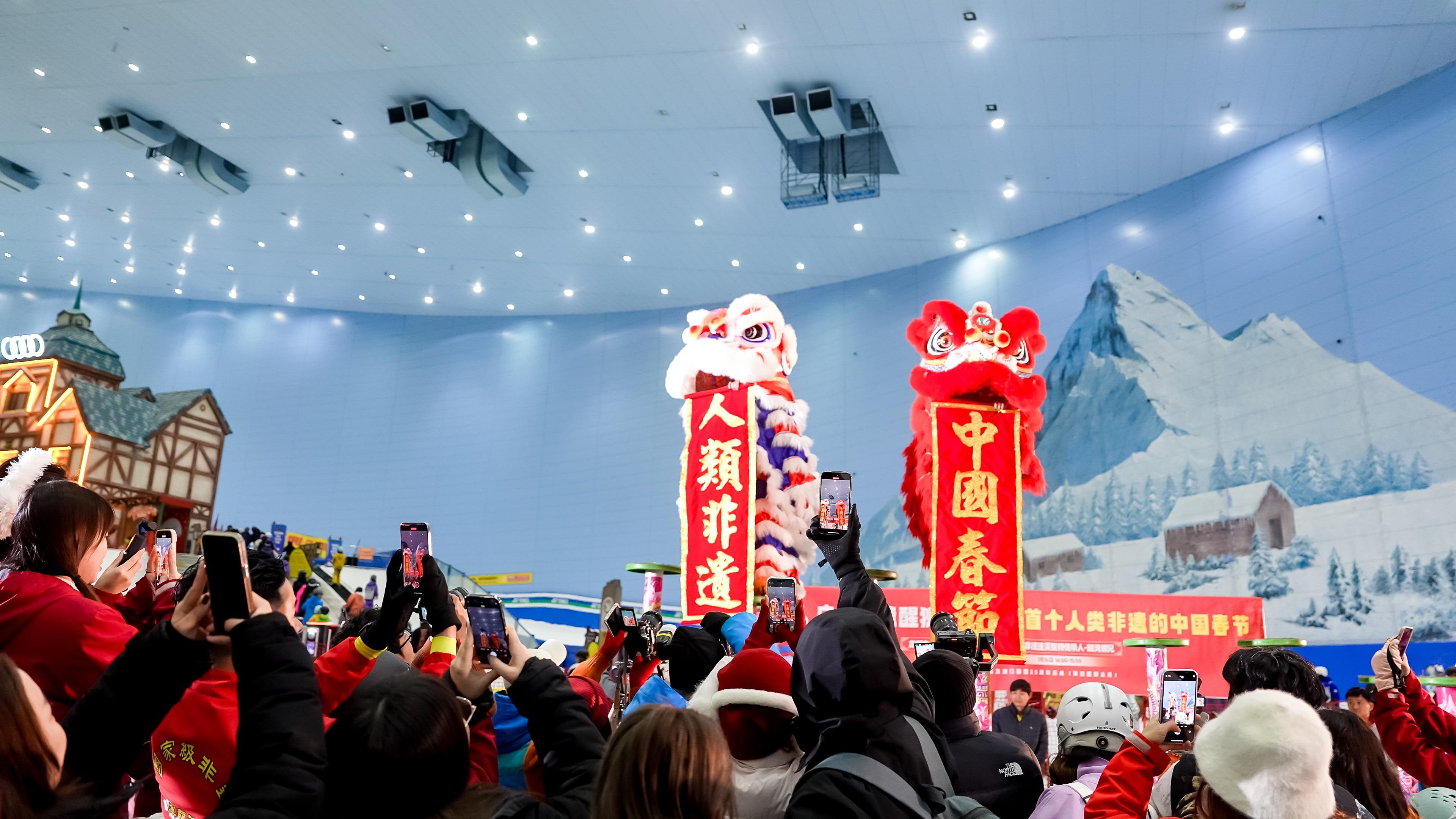 | 2025年乙巳蛇年,我国将迎来第一个“人类非遗版”春节。广州热雪奇迹于1月10日-2月4日隆重开启“在雪地 过大年”新春主题活动,为这意义非凡的新春佳节增添一抹别样色彩。 1月16日,一场别开生面的雪地醒狮拉开这场冰雪旅游嘉年华的序幕。